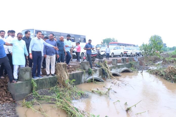 जामनेर तालुक्यातील नेरी (भोरटक्के नगर, इंदिरा नगर, बाजार पट्टा) आणि पाचोरा तालुक्यातील शिंदाड, सातगाव या गावांना भेट देऊन त्यांनी नुकसानीची पाहणी केली. यावेळी आमदार किशोर पाटील, जिल्हाधिकारी आयुष प्रसाद, सार्वजनिक बांधकाम विभागाचे अधीक्षक अभियंता प्रशांत सोनवणे, जामनेरचे तहसीलदार नानासाहेब आगळे यांच्यासह इतर अधिकारी उपस्थित होते.