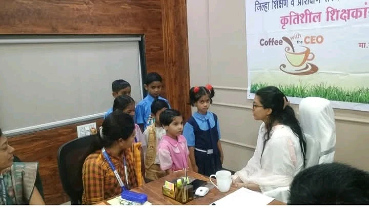 जिल्हा परिषदेच्या मुख्य कार्यकारी अधिकारी मीनल करनवाल यांनी मंगळवारी जिल्हा परिषदेत आयोजित “Coffee with CEO” या विशेष उपक्रमांतर्गत विविध विषयांत प्रावीण्य मिळवलेल्या विद्यार्थ्यांशी मनमोकळा संवाद साधला.