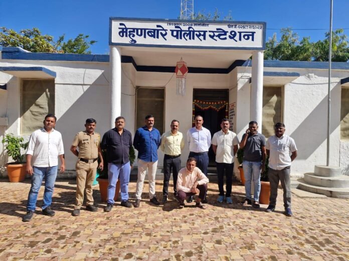मेहुणबारे पोलीस स्टेशन हद्दीत दाखल असलेल्या महिलाविनयभंगाच्या गंभीर गुन्ह्यात तब्बल ९ वर्षांपासून फरार असलेल्या आरोपीस अखेर अटक करण्यात पोलिसांना यश आले आहे. पोलीस स्टेशन रेकॉर्डवरील पाहिजे व फरार आरोपींवर कठोर कारवाई करण्याचे निर्देश जिल्हा पोलीस अधीक्षक डॉ. महेश्वर रेड्डी, अपर पोलीस अधीक्षक चाळीसगाव कविता नेरकर व उपविभागीय पोलीस अधिकारी चाळीसगाव उपविभाग विजयकुमार ठाकुरवाड यांनी दिले होते. त्या पार्श्वभूमीवर मेहुणबारे पोलिसांनी ही प्रभावी कारवाई केली.