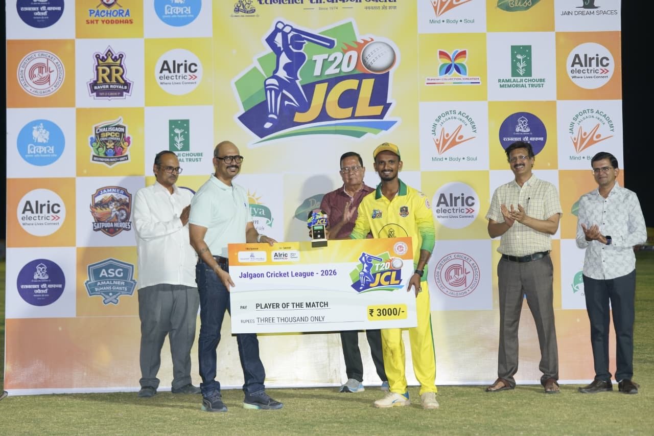 १६० धावांच्या आव्हानाचा पाठलाग करताना जळगाव कोगटा किंग्जची सुरुवात डळमळीत झाली. अवघ्या १२ धावांत सलामीची फळी कोसळली असताना ओम भोसले यांनी १७ चेंडूत ३२ धावांची आक्रमक खेळी करत संघाला सावरले. त्यानंतर कर्णधार जगदीश झोपे यांनी २५ चेंडूत ५ चौकार आणि ४ षटकारांच्या मदतीने ६१ धावांची झंझावाती खेळी साकारत संघाला अवघ्या १७ व्या षटकात ५ गडी राखून विजय मिळवून दिला. या दमदार कामगिरीसाठी जगदीश झोपे यांना सामनावीर पुरस्काराने गौरविण्यात आले. तसेच निखेलेश चौधरी यांना अचूक गोलंदाजीसाठी, तर जगदीश झोपे यांना सर्वाधिक षटकारांसाठी विशेष सन्मान देण्यात आला. पारितोषिक वितरण समारंभाला जैन इरिगेशनचे मानव संसाधन विभागाचे वरिष्ठ सहकारी व्ही. एम. भट यांच्यासह अनेक मान्यवर उपस्थित होते.