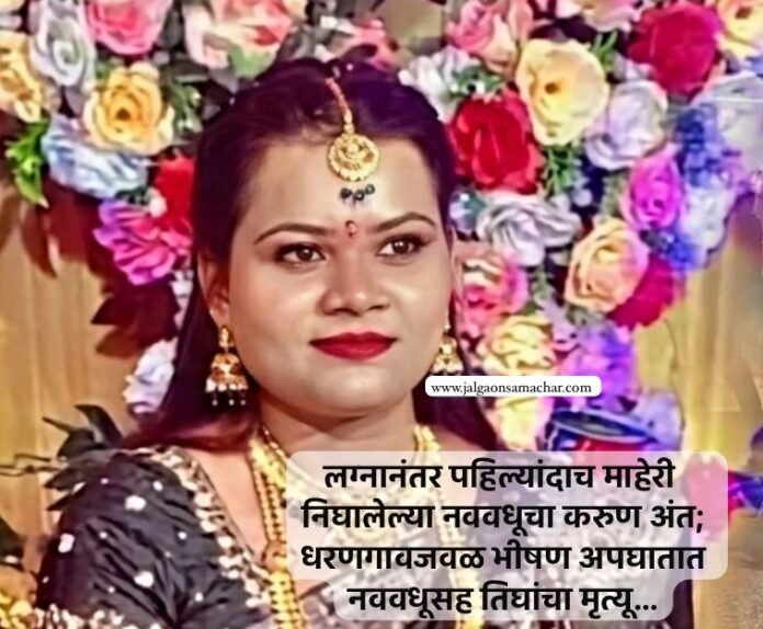 धरणगाव तालुक्यातील वराड गावाजवळ बुधवारी (दि. 29 एप्रिल) सकाळी सुमारे 9 वाजेच्या सुमारास झालेल्या भीषण अपघातात नववधूसह तिघांचा जागीच मृत्यू झाला असून सहा जण गंभीर जखमी झाले आहेत. वापी (गुजरात) येथून अकोल्याकडे निघालेल्या क्रूझर गाडीचे चालत्या स्थितीत चाक निखळल्याने हा अपघात घडल्याची प्राथमिक माहिती समोर आली आहे.