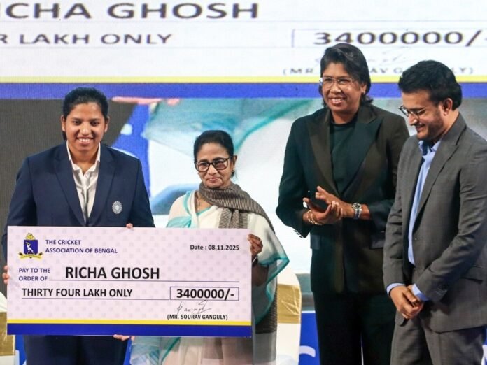 वर्ल्डकप विजयानंतर भारतीय महिला क्रिकेट संघातील खेळाडूंवर सन्मानांचा वर्षाव सुरू असताना पश्चिम बंगालची तरुण खेळाडू ऋचा घोषला मिळालेला बहुमान देशात नवा आदर्श निर्माण करणारा ठरला आहे. मुख्यमंत्री ममता बॅनर्जी यांनी दार्जिलिंगमध्ये उभारल्या जाणाऱ्या नव्या क्रिकेट स्टेडियमला ऋचाचे नाव देण्याची घोषणा केली. अनेक दिग्गज पुरुष क्रिकेटपटूंनाही न मिळालेला हा सन्मान एका महिला क्रिकेटपटूला मिळणे ही भारतातली पहिलीच वेळ आहे.