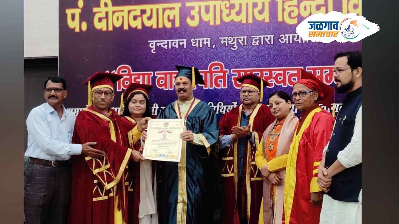 पारोळ्यातील डॉ संजय पाठक यांना डॉक्टरेट पदवी देऊन गौरविण्यात आले आहे. याबाबत अधिक माहिती अशी की दि.२४/७/२४ रोजी पं. दिनदयाळ उपाध्याय हिंदी विद्यापीठ वृंदावन (मथुरा) द्वारा विद्यावाचस्पती सारस्वत सन्मान समारंभाचे आयोजन करण्यात आले. सदर पदवीदान समारंभ कॉन्स्टिट्युशन क्लब ऑफ इंडिया, नवी दिल्ली येथे संपन्न झाला. राष्ट्रीय व आंतरराष्ट्रीय शोधमोहिमेत विद्यापीठाच्या प्रबंध कार्यकारणीद्वारा महाराष्ट्रातून विभिन्न क्षेत्रातील विशेष कार्य असणाऱ्या ७ विद्वानांची निवड करण्यात आली. त्यात संजय लक्ष्मण पाठक यांची निवड करताना त्यांनी केलेली लक्षित – दुर्लक्षित कार्याचा विचार केला गेला. औपचारिक व अनौपचारिक शिक्षण, योग्यता, अनुभव, प्रतिवर्षी महाराष्ट्रात व महाराष्ट्राबाहेर वितरित होणारे त्यांचे द्वारा लिखित मकरसंक्रांतीपट, अनेक मंदिरे उभारणीसाठी शास्त्रीय मार्गदर्शन, विविध ठिकाणी मूर्तींची चल व अचल प्राणप्रतिष्ठा विधी, केलेले यज्ञयाग, श्रीमद् भागवत व इतर पुराणे, संस्कृत पारायणासह कथा, कुळधर्म कुलाचार मार्गदर्शन, पारंपारीक पूजा अर्चन विधी ,तसेच महाविद्यालयात अध्यापन, वृक्षारोपण व संगोपन, समाजात आदर्श निर्माण होणे व टिकून राहणे यासाठी विविध महानुभावांची जयंती व पुण्यतिथी साजरी करणे, देशभक्ती, विश्वकल्याणासाठी वैयक्तिक अनुष्ठान व इतर अनेक सामाजिक कार्ये ई. केलेली व करत असलेली विशेष कार्याची दखल घेवून विद्यावाचस्पती(डॉक्टरेट)हा पुरस्कार सन्मानपूर्वक प्रदान करण्यात आला.