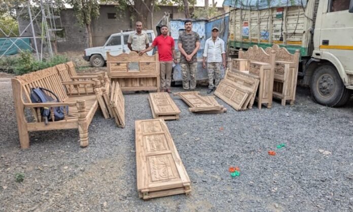सूत्रांच्या माहितीनुसार, रावेर-सावदा रस्त्यावर टाटा कंपनीच्या एमएच 04 एफजे 3248 या क्रमांकाच्या वाहनात सागवानी चार पलंग आणि एक सोफा सेट आढळून आला. वनपरिक्षेत्र अधिकाऱ्यांनी वाहनचालक गणेश भिमराव खैरनार (वय 27, रा. जळगाव) याला परवान्यासंबंधी विचारले असता त्याने कोणताही परवाना नसल्याचे सांगितले.