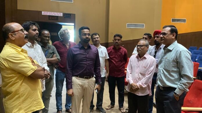 छत्रपती संभाजीराजे नाट्यगृहाचा मक्ता हा एका खासगी संस्थेकडे होता. मात्र, काही तांत्रिक अडचणींमुळे त्यांनी हा मक्ता सोडल्याने नाट्यगृह ओस पडले होते. दरम्यान, नाट्यगृहाची कोणतीही टेंडर प्रक्रिया निघाली नसल्याने स्थानिक रंगकर्मींची हक्काची मराठी हौशी राज्य नाट्य स्पर्धा होणार कुठे, असा प्रश्न उपस्थित झाला होता. यावेळी शहरातील रंगकर्मींनी एकत्र येत जिल्हाधिकार्‍यांकडे पाठपुरावा केला. दरम्यान, यावेळी जिल्हाधिकार्‍यांनी नाट्यगृहाला भेट देत रंगकर्मींच्या सर्व अडी-अडचणी ऐकून घेत यावर लवकरात लवकर तोडगा काढून मराठी हौशी स्पर्धा ही 15 नोव्हेंबरला नाट्यगृहात होणार असल्याचे सांगितले. यावेळी त्यांनी दिलेल्या सूचना आणि निर्माण होणार्‍या समस्या या समस्त रंगकर्मीनी ऐकून घेत त्यावर तोडगा कसा काढला जाईल, यावर चर्चा विनिमय करण्यात आले. यावेळी बांधकाम विभागाचे कार्यकारी अभियंता आर.डी.पाटील, कनिष्ठ अभियंता मुकेश सोनवणे, ज्येष्ठ रंगकर्मी नाट्यकर्मी चिंतामण पाटील, रमेश भोळे, शंभू पाटील, अनिल मोरे, डॉ.वैभव मावळे, गौरव लवंगले, विशाल जाधव, हर्षल पाटील, अमोल ठाकूर, आकाश बाविस्कर, नाट्यगृहाचे तांत्रिक सहाय्यक विजू पाटील आदी उपस्थित होते.
