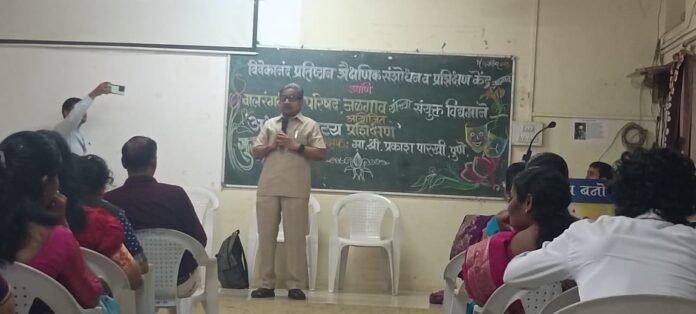 प्रभावी अध्यापनासाठी नाट्यशास्त्राचा वापर कसा करावा याचे मार्गदर्शन करण्यासाठी बालरंगभूमी परिषद जळगाव जिल्हा शाखा व विवेकानंद प्रतिष्ठानतर्फे शिक्षकांसाठी अभ्यास नाट्य कार्यशाळेचे आज (दि.१६) आयोजन करण्यात आले होते. बालनाट्याच्या क्षेत्रात पाच दशकांपासून कार्यरत असणारे पुणे येथील प्रकाश पारखी यांनी उपस्थित शिक्षकांना मार्गदर्शन केले.