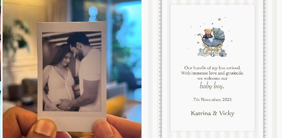 कतरिना कैफ ४२ व्या वर्षी आई बनली असून, लग्नाच्या चार वर्षांनंतर या दाम्पत्याने त्यांच्या पहिल्या अपत्याचं स्वागत केलं आहे. या पोस्टनंतर चाहत्यांसह बॉलिवूड सेलिब्रिटींकडून शुभेच्छांचा वर्षाव झाला. माधुरी दीक्षित, सोनम कपूर, करीना कपूर, प्रियांका चोप्रा, आयुष्मान खुराना, परिणीती चोप्रा, मलायका अरोरा यांसारख्या अनेक कलाकारांनी कमेंटद्वारे कतरिना-विकीचे अभिनंदन केले.